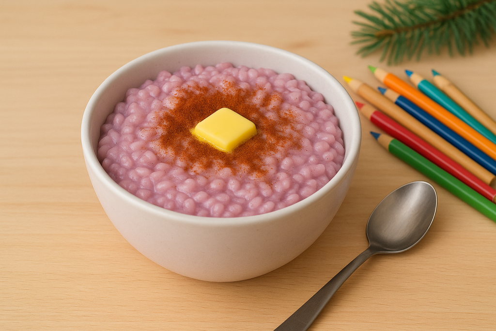 Nu skal jeres grød ikke længere bare hvid og kedelig – næ nej, den er blevet til en MAGISK, FARVET julegrød! 🌈🍚